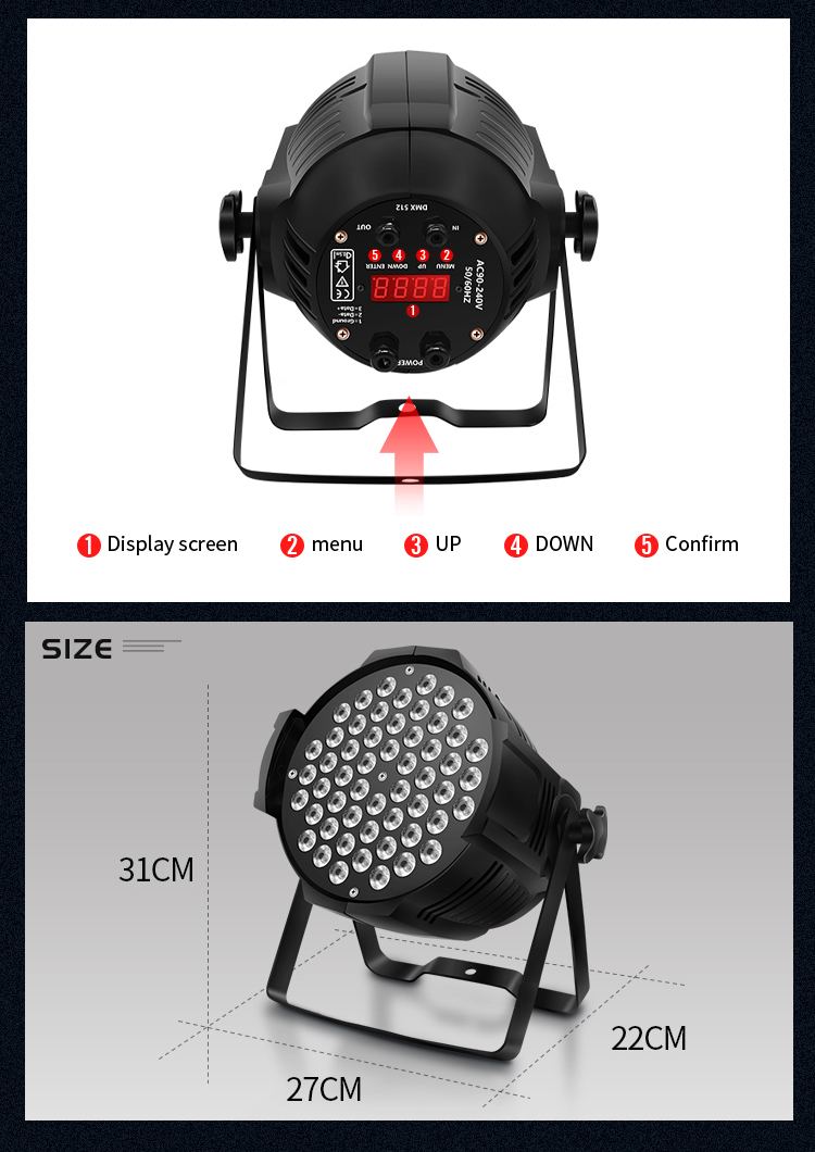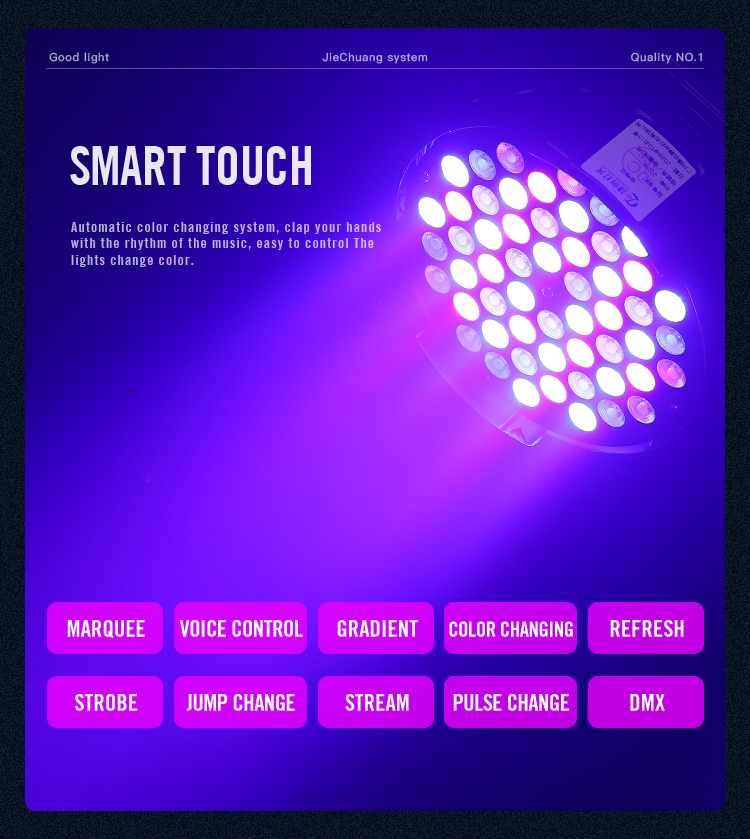 There’s many different versions for 54pcs led par light, 3w full power for each lamp bead, RGBW/ 3in1/4in1 for your optional. and you can choose console, remote or app control, amazing stage Led wash spotlight effect. For further information, pls contact with us.Â